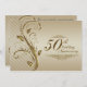 A Digitalbcon Images Design featuring a gold colored theme with custom images, shapes, patterns, styles and fonts in this one-of-a-kind 50th Anniversary Invitation Card. It comes complete with a matching style on the reverse with customizable information to suite the occasion and location.