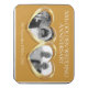 Customized golden wedding anniversary card personalize with two photos, year of marriage and inside words. Example reads 50th Golden Wedding Anniversary and your date. A great anniversary gift for a puzzlers. Double golden metal heart effect art for a now and then photo or individual photos, original graphic art and design by Sarah Trett for www.mylittleeden.com