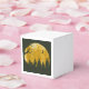 This aesthetic design depicts a scene in the night woods in awesome gold colors with a tree and forest silhouette and a crescent moon.