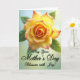 This card features a single golden-yellow flower centered in the upper half, with petals that fade into soft apricot and a thin blush-red edge that feels like a gentle kiss ❤️. The bloom’s tight spiral at the center draws your eye inward, like a quiet moment shared between close friends. Behind it, a softly blurred background of spring greens and pale blues sets a calm, airy scene. Light falls across the petals to show a velvety texture and a faint glow, adding a tender, romantic warmth to the image. Two deep green leaves peek out from behind the flower, offering a natural contrast that makes the warm tones stand out. Near the bottom, a flowing line of message text sits across the lower area in dark lettering, easy to spot against the pastel ground. A small 🌼 detail near the text area ties the message to the flower above. The petals are arranged in concentric layers, each one outlined by a subtle warm tint along the edges.