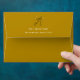 Hand drawn bow in golden yellow with elegant typography for the return address on a golden yellow envelope with coordinating pattern liner inside.