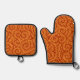 Golden Yellow Leafy Vine Pattern Oven Mitt & Pot Holder Set