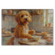 Add a soft and cheerful touch to your kitchen with this Goldendoodle design featuring a fluffy pup baking in a cozy setting. With its curly coat, joyful expression, and friendly personality, this artwork brings warmth and charm to any space.