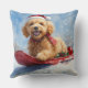 Goldendoodle Dog in Sledge Let it Snow Christmas Throw Pillow