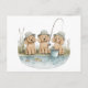 Cute illustration of dogs fishing. Wearing fishing hats and holding a fishpole on a lake. Perfect for pet lovers or dog parents who enjoy fishing.