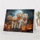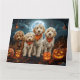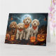 Unleash the spooky spirit with this eerie Halloween design featuring a pack of dogs under a dark, moonlit sky, surrounded by flying bats and glowing pumpkins. Perfect for those who love a touch of frightful fun with their furry friends!