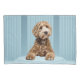 Goldendoodle Laying on Minimal Pastel Blue Podium Pillow Case