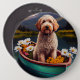 Goldendoodle on a Paddle: A Scenic Adventure Button