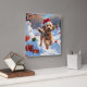 Goldendoodle Running in Snow with Christmas Hat Square Wall Clock