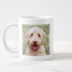 Up close shot of a goldendoodle smiling. Designer dog, golden retriever and poodle.