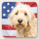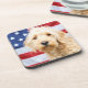 Goldendoodle With American Flag Beverage Coaster