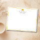 Ivory white note card with a goldenrod border and adorable elephant graphic. Personalized with your name in matching color for a warm, modern and joyful baby stationery look.