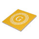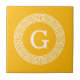 Goldenrod Wht Greek Key Rnd Frame Initial Monogram Ceramic Tile