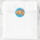 Round sticker shown with a cute goldfish print.