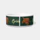 A dog bowl with a cute image of a Golden Doodle. The background, image and text can be personalized. Original artwork by W.B.