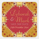 Stylish and unique custom Wedding, Engagement, Anniversary Save the Date rounded corner square sticker. All the text can be fully customized, including style of font and colours.
