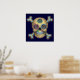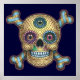 Trippy Day of the Dead sugar skull design with third eye, Jolly Roger pirate crossbones and intricate, jeweled patterns. Original art, on t-shirts, posters, gifts.