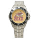 Has heft and feel of expensive stainless steel quartz watches. Good band with safety catch. I removed links, which is easy because engraved arrows show direction to push the linking pins. As always by this seller, the image (a railroad logo) is a perfect reproduction of my emailed image, and is precisely spaced and aligned.