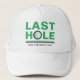 Celebrate the groom’s last swing before the ring with this green, black, and white golf-themed bachelor party trucker hat. Designed with the phrase "Last Hole," this fun and bold design is perfect for a golf outing or bachelor weekend. A great accessory for the groom and his crew, this hat adds a playful touch to the celebration. Personalize it with the groom’s name for a custom keepsake!