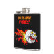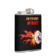 Well made flask, a little better than I had expected. Flask came in clear plastic box which gave it a nice presentation when I took it out of the zazzle packaging. Image is not printed on flask but on sticker. Don't know how this will hold up I haven't used it yet. This would make a Great gift! I plan to purchase more for friends! Cheers. I thought a little brighter than computer. Very crisp, writing wasn't
