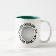 HUNTER GREEN on the inside custom Two-Tone Mug. 11 oz. custom Golf Mug - 3.8" high, 3.2" diameter, with image of golf ball and personalized text. TEMPLATE OPTIMIZED FOR LARGE SIZE TEXT ON 11oz. MUG. Microwave and dishwasher safe, FDA approved for food and beverage safety. Customize upper and lower text on the front and the back of the mug by clicking 'Personalize this template'. Design your own gifts for a golfer or golf fan, promotional sports mugs for corporate gifts, and mugs for the office, or create your own Christmas stocking stuffer or just a great personalized gift for yourself. Visit https://customsportsgift.com for other mug style options and the best browsing experience. A top gift for a golf enthusiast.