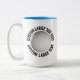 LIGHT BLUE on the inside custom Two-Tone Mug. Large 15 oz. custom Golf Mug - 4.5" high, 3.4" diameter, with image of golf ball and personalized text. TEMPLATE OPTIMIZED FOR LARGE SIZE TEXT ON 15oz. LARGE MUG. A top gift for a golf enthusiast. Microwave and dishwasher safe, FDA approved for food and beverage safety. Customize upper and lower text on the front and the back of the mug by clicking 'Personalize this template'. Design your own gifts for a golfer or golf fan. Visit https://customsportsgift.com for other mug style options and the best browsing experience. Promotional sports mugs for corporate gifts, and mugs for the office, or create your own Christmas stocking stuffers or just a great personalized gift for yourself.