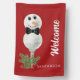 Golf Ball Snowman Black Bowtie Red Background., winter holiday Christmas Weatherproof Personalized House Flag