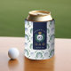 Golf Ball, Tee, Laurel Wreath Pattern & Monogram Can Cooler