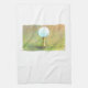 Original watercolor painting of a single golf ball on a kitchen dish towel. Great for any Golf Lover!