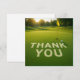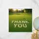 Golf ball with word thank you on putting green card