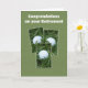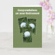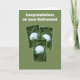 This golf balls retirement card features three golf balls in the center nestled in grass with the words, "Congratulations on your Retirement" along the top. Of course, the card is green! A fun retirement card! Copyright Kathy Henis