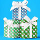 This festive Christmas wrapping paper features a golf ball dressed in Santa hats, surrounded by sparkling white snowflakes on a cheerful holiday on three colors of Christmas green, light blue and lime green.