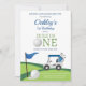 Celebrate your little ones special day with this fun golf-themed birthday party invitation! Featuring playful golf course graphics, a flag, ball, and cart, this design is perfect for young sports fans. The cheerful wording and vibrant style make it ideal for a first birthday or any milestone celebration. Personalize with your party details to create a unique keepsake that guests will love. Great for golf clubs, outdoor parties, or sporty family gatherings, this invitation is a hole-in-one for your event!