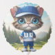 Big blue eyed cartoon golfing cat