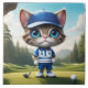 Big blue eyed cartoon golfing cat