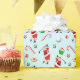 Unique golf themed holiday gift wrap featuring Santa golfer surrounded by Christmas treats and snowflakes.