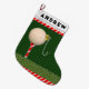 Golf Christmas stocking and holiday decor for your favorite golfer featuring a ball ornament on a golf tee. To personalize edit text to add name of golfer.