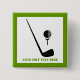 Golf club and ball black, green custom button that dsisplays a minimalist icon of a black golf club and ball and your text on white background with green border. See lots of designs at our Sports Gifts store.