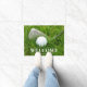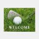 Custom golf themed doormat featuring a golf club and ball on green grass. Use the online template fields to personalize with a your family name.