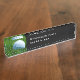 The product was just like it was in the pics, everyone at work loves it! Came on time and it was neatly packed. Bold and Clear. My name can be seen from far and it matches in color.