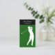Simple two side Golf Coach business cards design template with graphic of a golfer swinging a golf club in the background and minimalist style layout you can customize online.