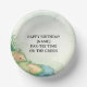 Create a personalized golf party setup with this sporty golf course design, featuring a vibrant watercolor putting green and space to customize text in the center. Designed for easy personalization, the middle layout allows up to four lines of custom text such as a name, age, event title, or date — perfect for standout golf party tableware.