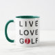 This decorative coffee mug with a photo of a golf course and live,love, golf text can be customized to your own favorite digital photo,logo,company logo or your initials.
