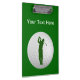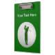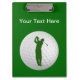 Golf theme custom clipboard with image of a golfball, golfer swinging a golf club, and text you can personalize on both sides. Designed as a custom business clipboard for a golf course, golf instructor, or school.
