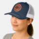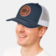 Custom Leather Patch Hat, Sytle: Adult Retro Trucker Cap, Color: Heather / Black, Shape: Circle