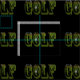 Pictured in a dimensional design is the word golf made with a golf balls on the green image