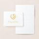 This folded note card is shown with a golf player print in gilded real gold foil.