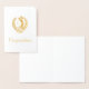 This folded note card is shown with a golf player print in gilded real gold foil.