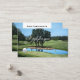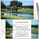 Gift certificate with a golf theme featuring an image of a golf course with a ball. The front image of a golf ball can be dragged or deleted if you like and you can replace the image of the golf course with your own photo (optional). Great for a golf resort or club or a teacher in golf. You can also use this card as a regular business card if you like. If you need more space on the back, you can also delete the image.