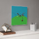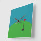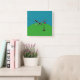 Simple and modern teal blue and green background, white golf ball and red flag. Great for Golf lovers, to decorate any room in your home or office.